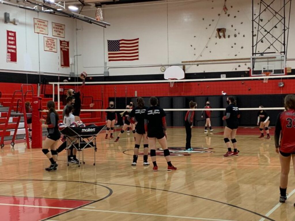 Cheshire girls volleyball warming up for a game in 2020. (photo creds: Gametime CT)