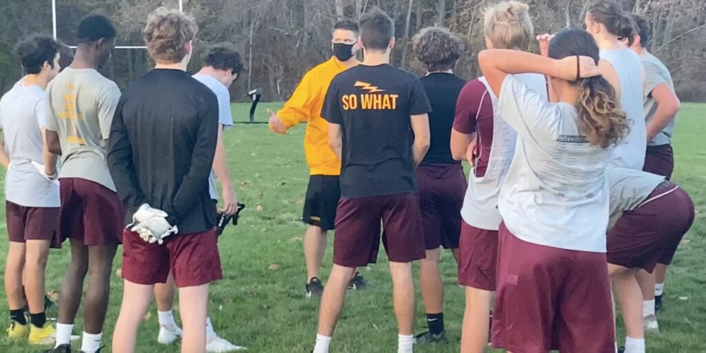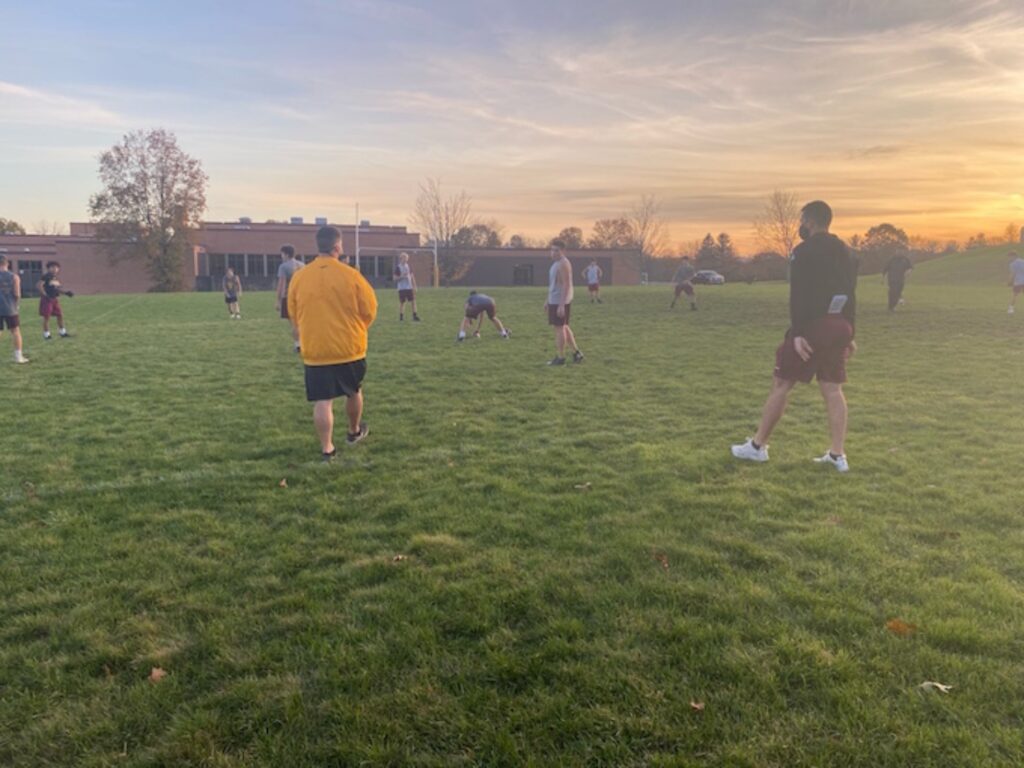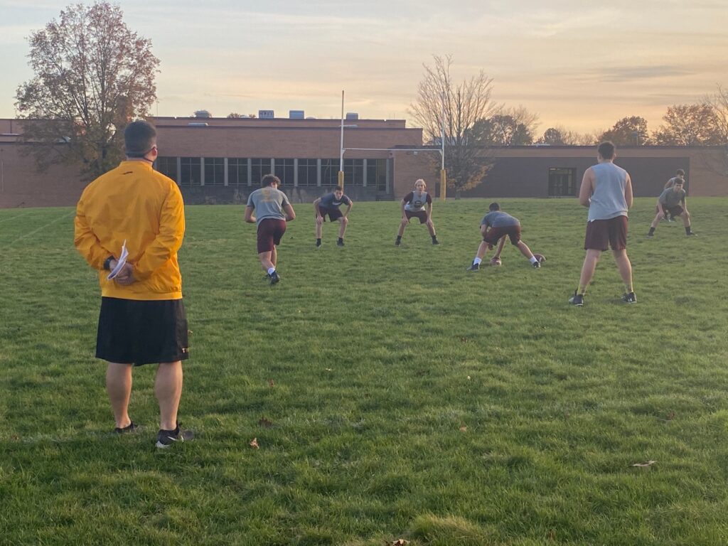 Sheehan football out practicing on Nov. 5 with no lineman players or coaches in attendance.