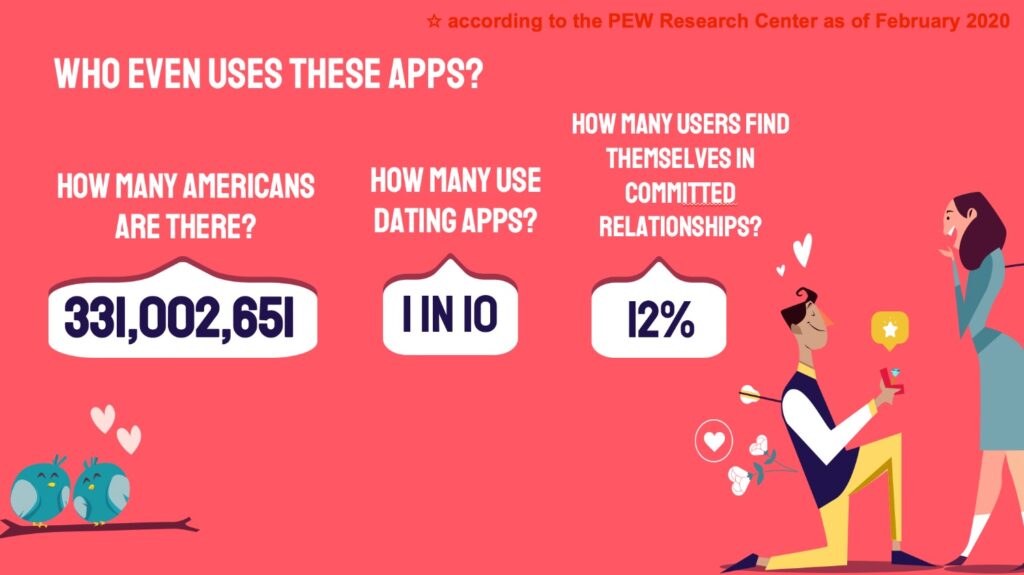 The following podcast talks about how modern technology affected dating culture for multiple generations. The images in the slideshow below follow the podcast chronologically and should be used to visualize the matching statistics. All interviews were recorded with permission granted before we began.