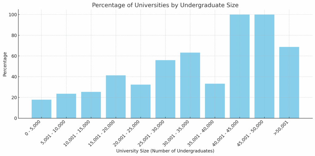 Below are two studies that Professor Tan and his colleagues performed. The first shows that, “In general, universities that have a larger undergraduate population offer at least one blockchain course. Universities with 25,001 to 30,000 students have 56% offering at least one blockchain course. Those with 30,001 to 35,000 students have 63.2% offering at least one course. Ultimately, all the schools reviewed with an undergraduate size of 40,001 to 50,000 offer at least one blockchain course.